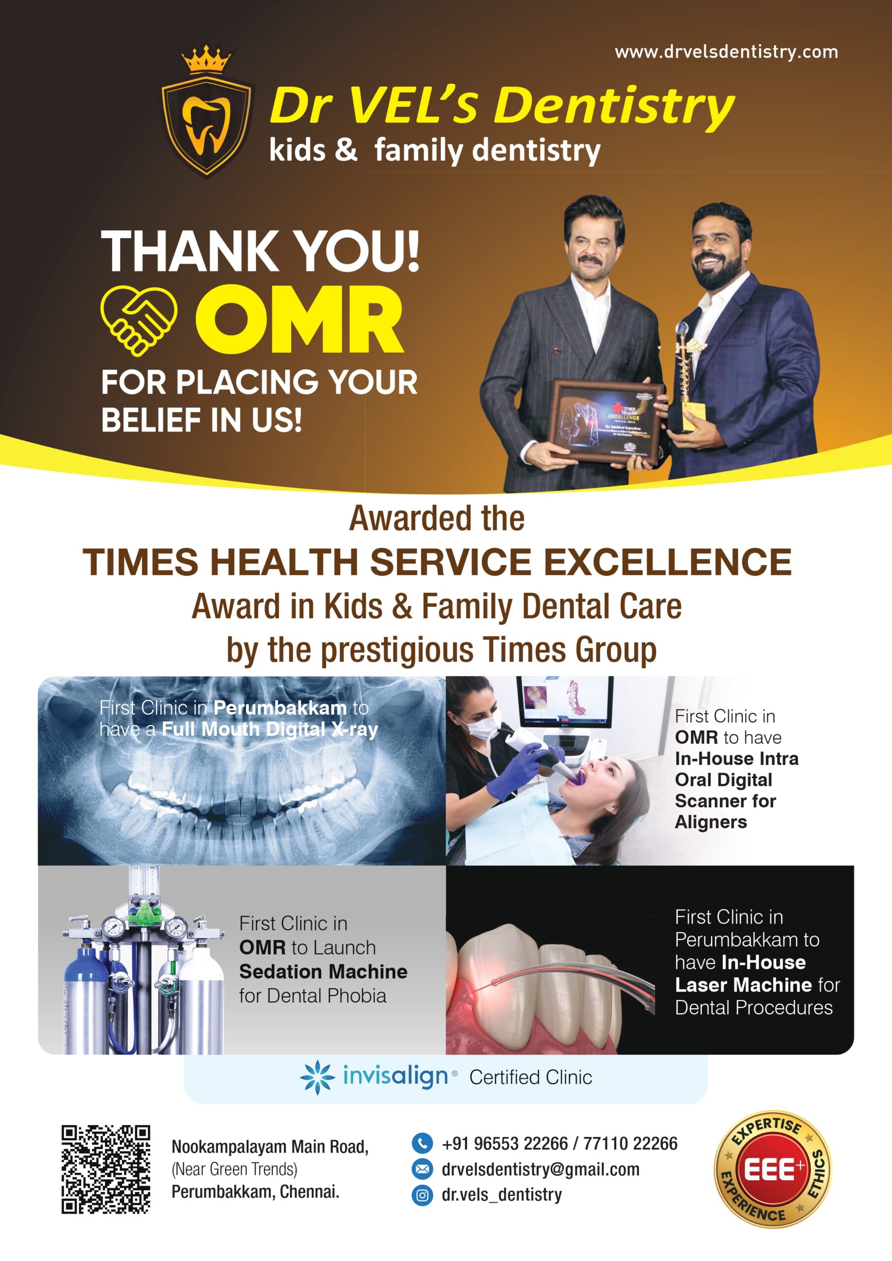 - Winner of The Times Health Service Excellence Award in Kids & Family Dentistry for the year 2024 Awarded by the Prestigious Times Group